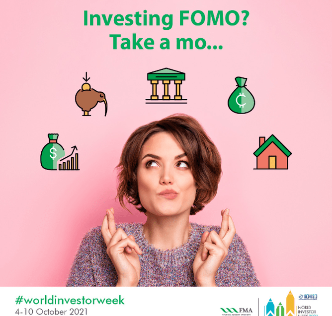 The New Zealand theme for World Investor Week 2021 is ‘Investing FOMO? Take a Mo’ which supports recent FMA research that almost one-third of investors using online platforms said they’d jumped into an investment in the last two years because they didn’t want to miss out.